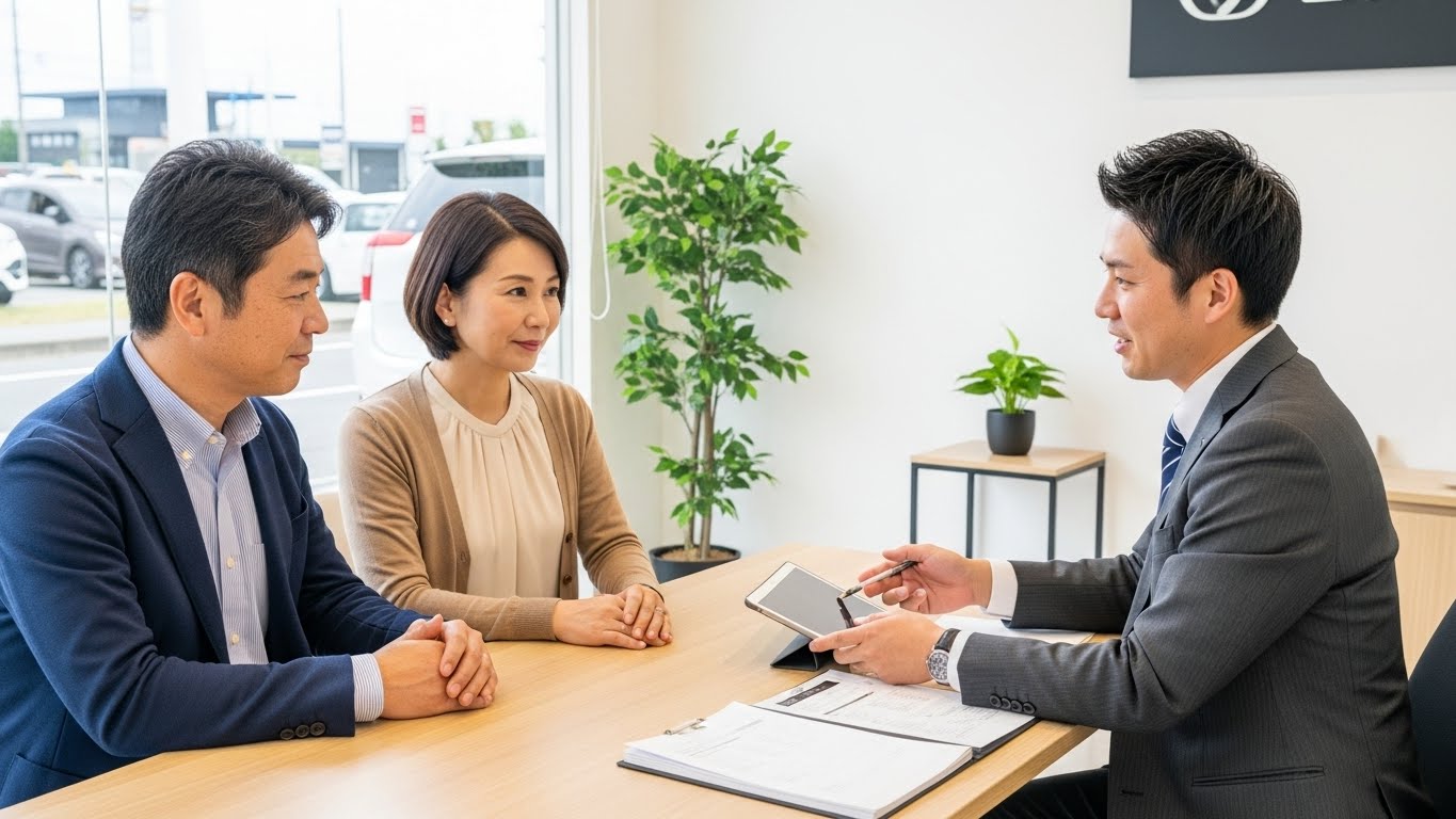 さいたま見沼店では、特に②と③のヒアリング・条件整理のステップに時間をかけるようにしています。ここで「月々いくらなら安心して払えるか」「何年くらい乗る前提か」「将来、家族構成はどう変わりそうか」といった点を一緒に考えることで、後から苦しくならないローン設計が可能になります。
